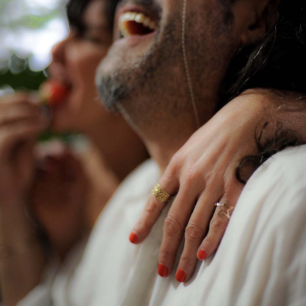 All our jewelry and accessories are handmade. In our Parisian workshops. And we take the greatest care of them. They are made with a brass base on which is applied a layer of palladium, a very resistant metal which fixes the gilding and allows a beautiful gilding of great quality. 1 micron minimum for Gold, at least 15 microns for Silver. All patinated colors are varnished.